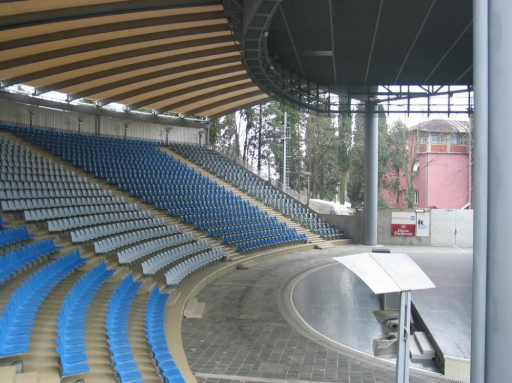 Letno nadkrito prizorišče ima 1777 sedišč, s stojišči lahko sprejme do 2300 obiskovalcev. Oder meri 24 m x 15 m. Podzemni hodnik vodi od odra do garderobnih prostorov. Ob prizorišču je tudi kavarna.